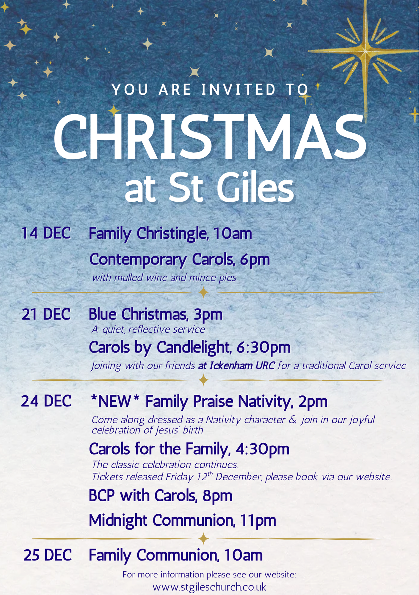 The church office can be contacted at office@stgileschurch.co.uk or 01895 622971, Tues-Fri 9.00-1.00pm. Please direct all minor and routine enquiries to the office.